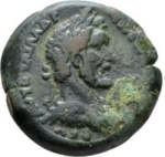 laureate-headed bust of Antoninus Pius wearing cuirass and paludamentum, right, seen from front or rear