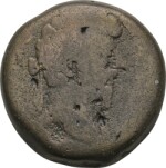 laureate head of Marcus Aurelius with traces of drapery, right