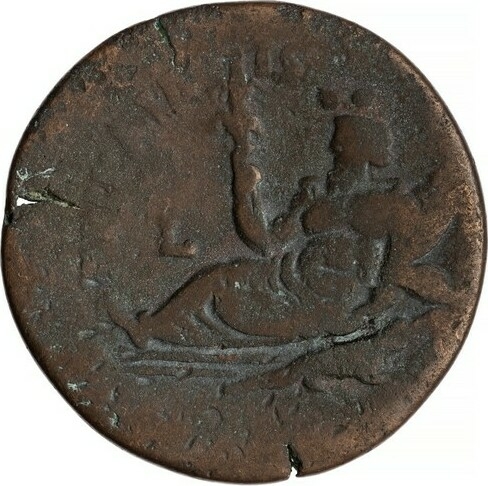 Nilus, with crocodile beside him, reclining left, holding reed and cornucopia (from which issues Genius holding wreath); above, ΙϚ; (below, water plants)