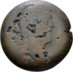 laureate head of Antoninus Pius with traces of drapery, right