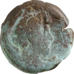 laureate head of Marcus Aurelius with traces of drapery(?), right