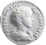 bare-headed bust of Commodus (youthful) wearing paludamentum, right, seen from rear