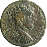 laureate-headed bust of Marcus Aurelius (long beard with short curls) wearing cuirass, right, seen from rear wearing cuirass, right, seen from rear