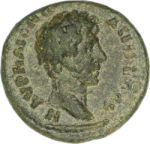 bare head of Marcus Aurelius (lightly bearded - short beard), right