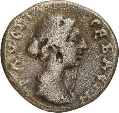 draped bust of Faustina II, right