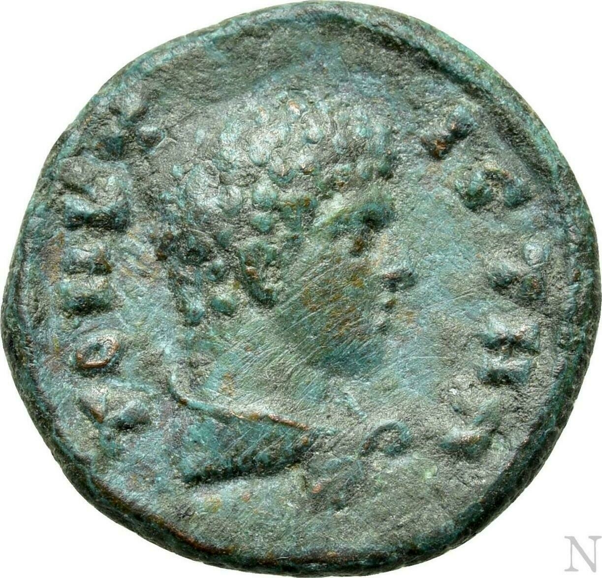 head of Heracles (youthful, assimilated to portrait of Marcus Aurelius as Caesar) with traces of lion skin, right