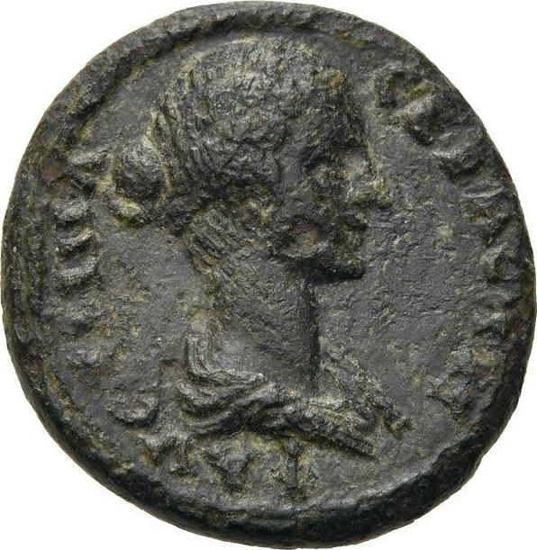 draped bust of Faustina II, right