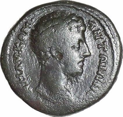 bare head of Commodus, right
