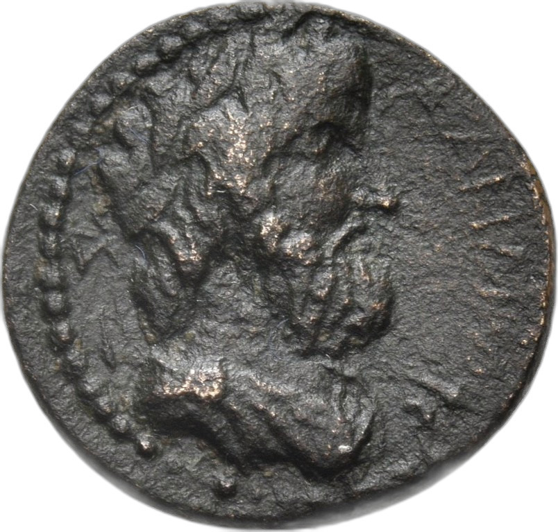 laureate and draped bust of Zeus, right