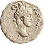 laureate head of Antoninus Pius, right