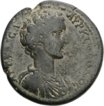 bare-headed bust of Commodus (youthful) wearing paludamentum, right, seen from front