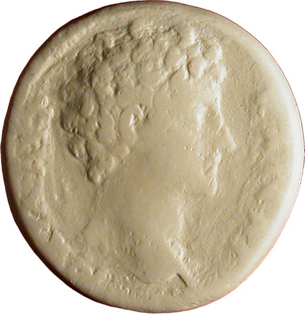 Cybele seated, left, wearing kalathos, holding patera(?) over lion, resting arm on tympanum |
