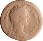bare-headed bust of Marcus Aurelius (youthful - lightly bearded?) wearing cuirass(?) and paludamentum, right, seen from centre