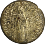 Athena standing, facing, head, right, holding spear, resting arm on shield