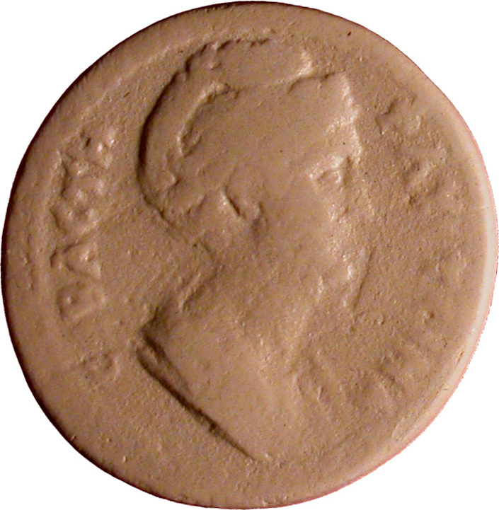 draped bust of Faustina I, right