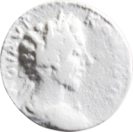 laureate-headed bust of Commodus (lightly bearded) wearing cuirass and paludamentum, right, seen from rear