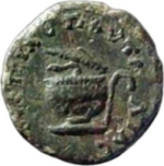 cista mystica with half-open lid out of which serpent creeps, left; to right, simpulum