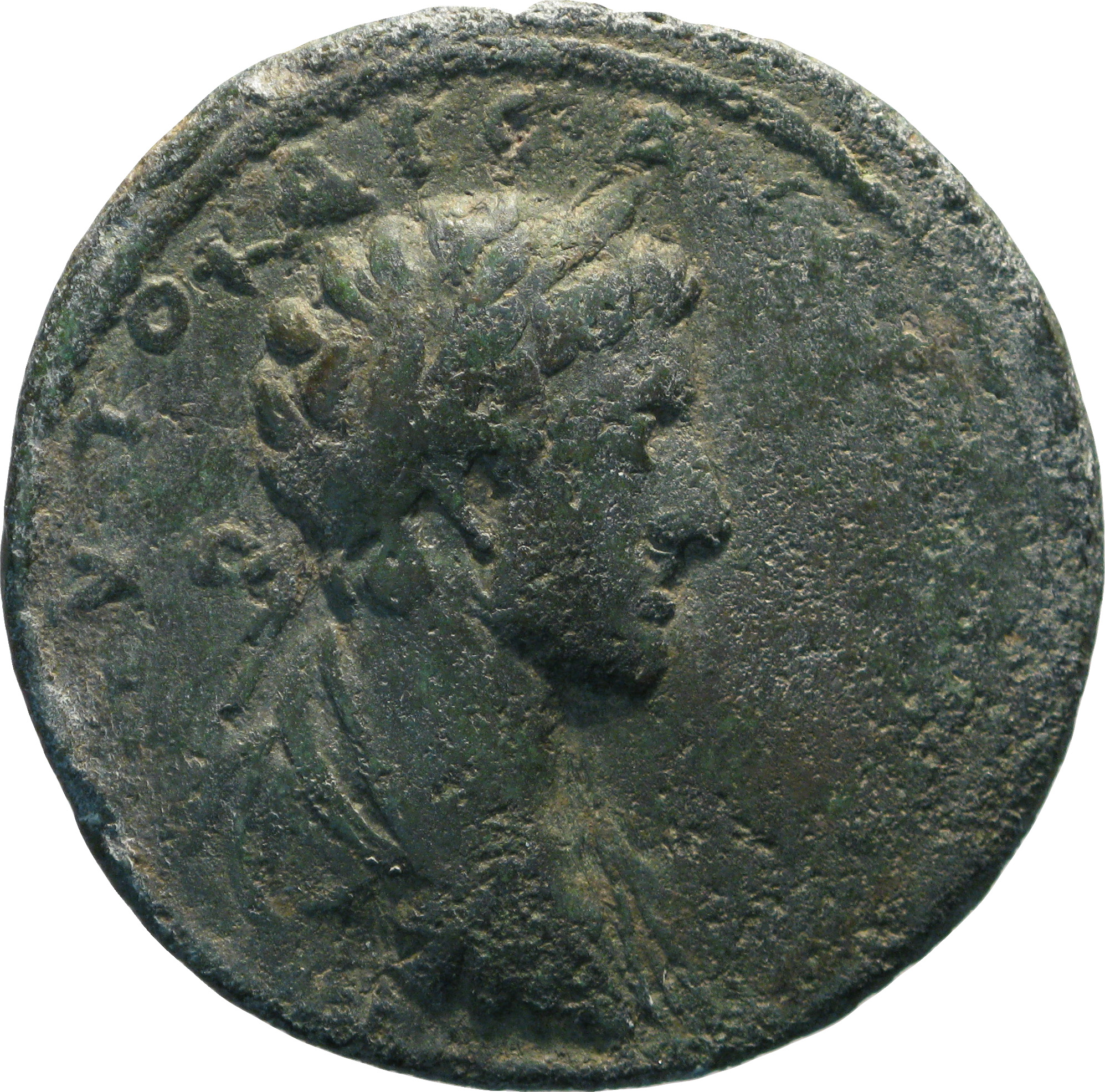 laureate-headed bust of Commodus wearing cuirass(?) and paludamentum, right, seen rear