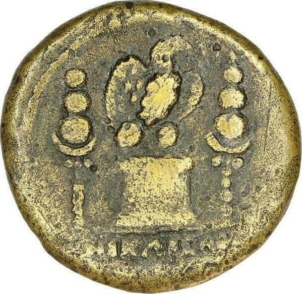 eagle standing on altar, right, spreading wings; between two standards