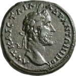 laureate head of Antoninus Pius, right