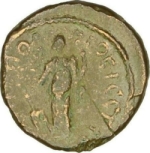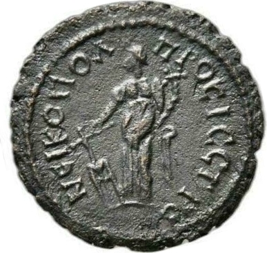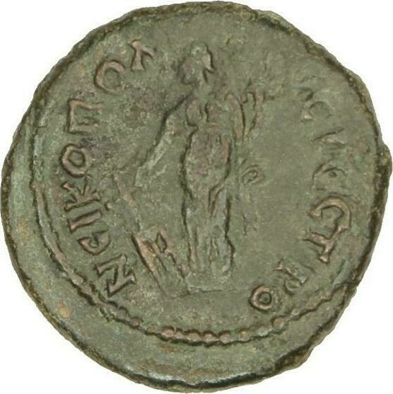 Tyche standing, left holding rudder and cornucopia