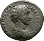 bare-headed bust of Marcus Aurelius (short beard) wearing paludamentum, right
