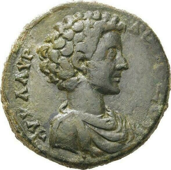 bare-headed bust of Commodus (youthful) wearing cuirass and paludamentum, right