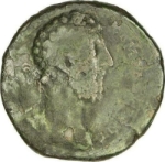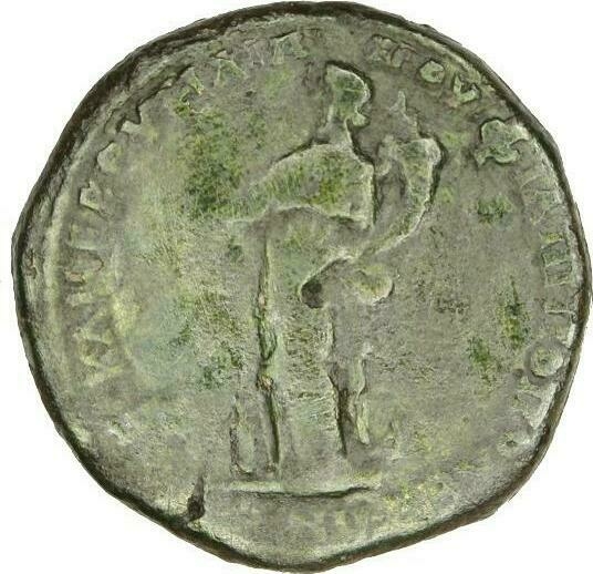 Homonoia standing, facing, head, left, holding patera over altar and cornucopia |