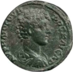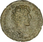 bare-headed and draped and cuirassed bust of Marcus Aurelius, right