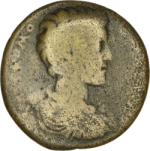 Obverse design bare-headed bust of Commodus (youthful) wearing cuirass and paludamentum, right, seen from rear