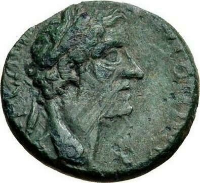laureate head of Antoninus Pius, right
