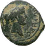 laureate head of Antoninus Pius, right