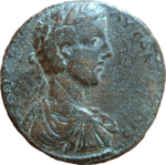 laureate-headed bust of Commodus (youthful) wearing cuirass and paludamentum, right, seen from rear