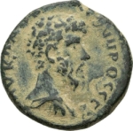 bare-headed bust of Lucius Verus wearing cuirass and paludamentum, right
