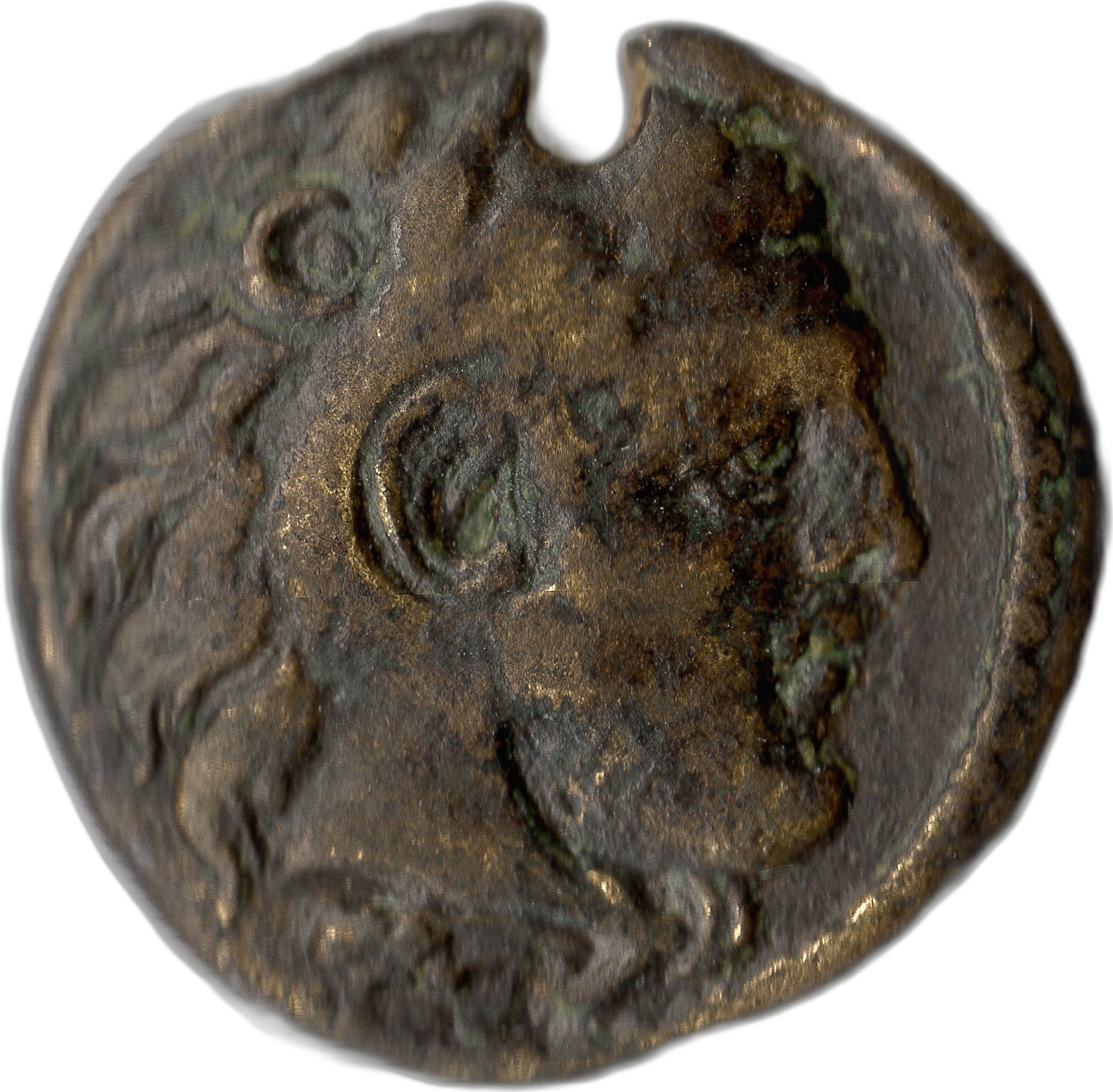 head of Heracles (youthful) wearing lion-scalp, right