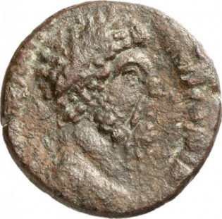 laureate-headed bust of Marcus Aurelius wearing cuirass and paludamentum, right, seen from centre