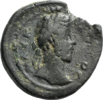 laureate head of Commodus (long beard), right