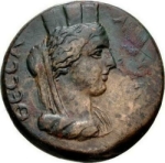 SNG Evelpidis 1321 = Touratsoglou, Pseudoautonomen XII A, 5 (Commodus), pl. 53 (V5, R5), reverse without eagle, reverse legend ΘΕ⊏⊏ΑΛΟ{ΝΕ}ΙΚΕωΝ |