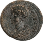 bare-headed bust of Commodus (short beard) wearing cuirass and paludamentum, left, seen from rear