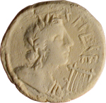 draped bust of Chersonas wearing wreath, right; to right, lyre