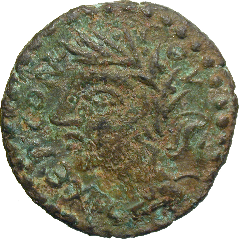 head of Chersonas wearing wreath, left; to right, lyre(?)