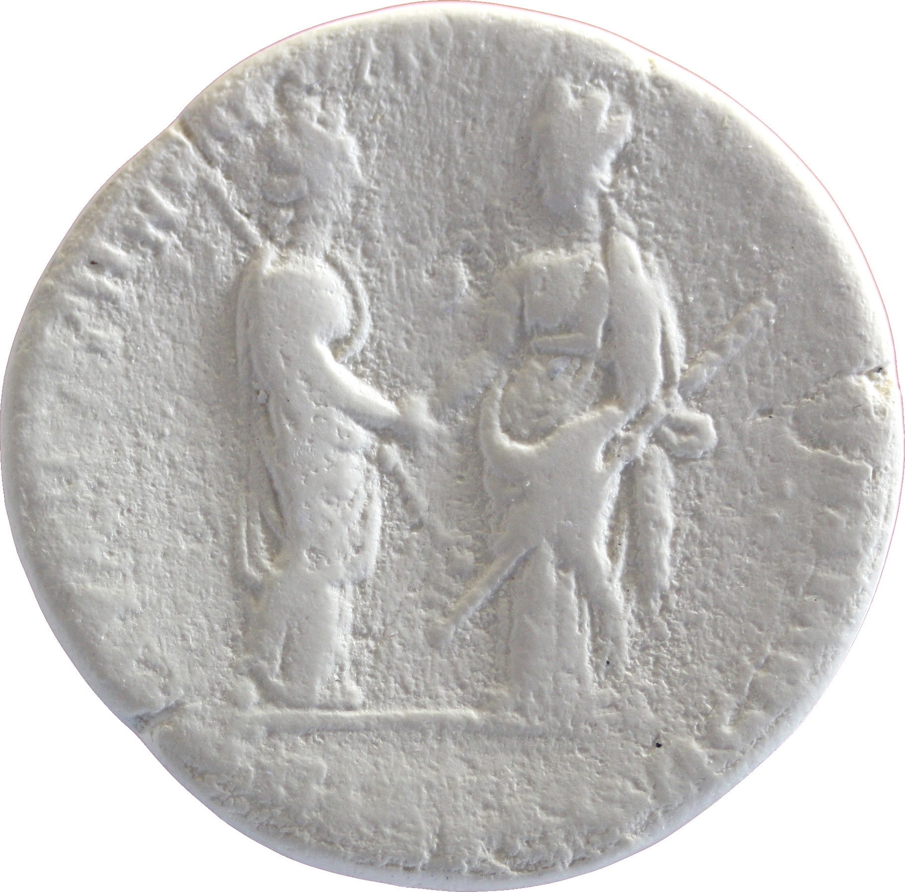 turreted Tychai of Mytilene and Adramyteum standing, facing each other, clasping hands, each holding long transverse sceptre