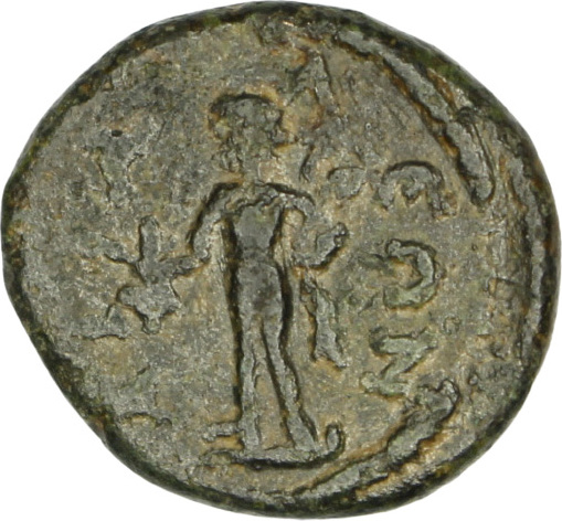 diademed bust of Poseidon with traces of drapery, left; to left, trident