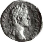 laureate head of Antoninus Pius, right