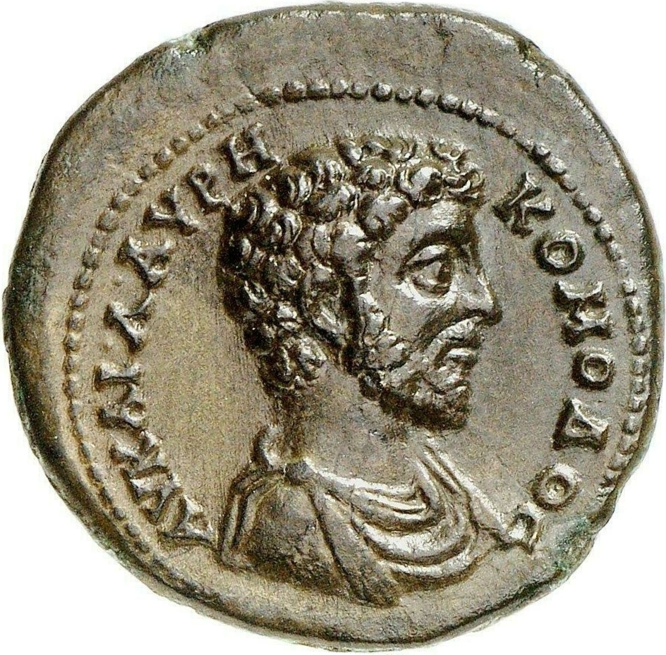 Budapest: obverse legend variation, ΑΥ Κ Λ ΑΥΡΗ ΚΟΜΟΔΟС |