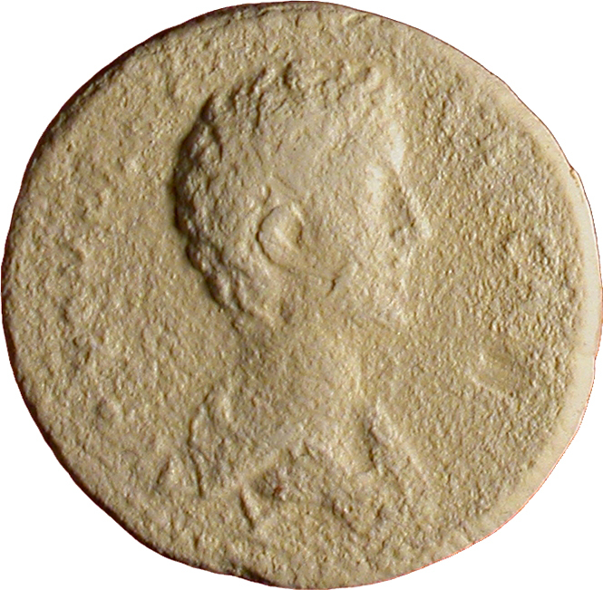 bare-headed bust of Commodus (youthful) wearing paludamentum, right