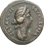 Demeter standing, facing, head, left, wearing corn wreath, holding two ears of corn and long sceptre