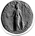 Athena standing, facing, head, left, holding owl and spear, resting arm on shield |