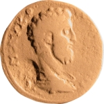 bare-headed bust of Commodus wearing cuirass(?) and paludamentum, right