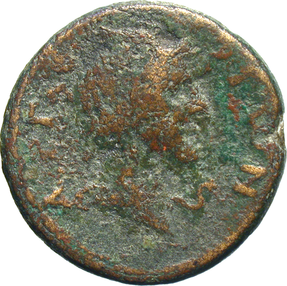 laureate head of Antoninus Pius, right